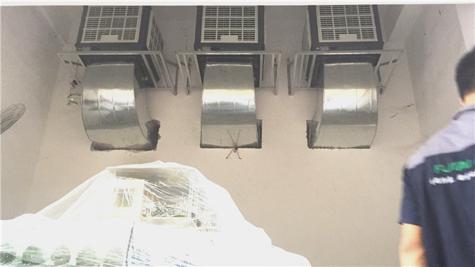 2、使用水簾空調(diào)配負(fù)壓風(fēng)機(jī)(通過環(huán)?照{(diào)將清涼的室外空氣送進(jìn)室內(nèi),同時運(yùn)用負(fù)壓風(fēng)機(jī)將原本室內(nèi)的空氣排出,達(dá)到循環(huán)換氣降溫的作用);降溫方式適合于工廠,耗電量低同時可以改善工作環(huán)境。