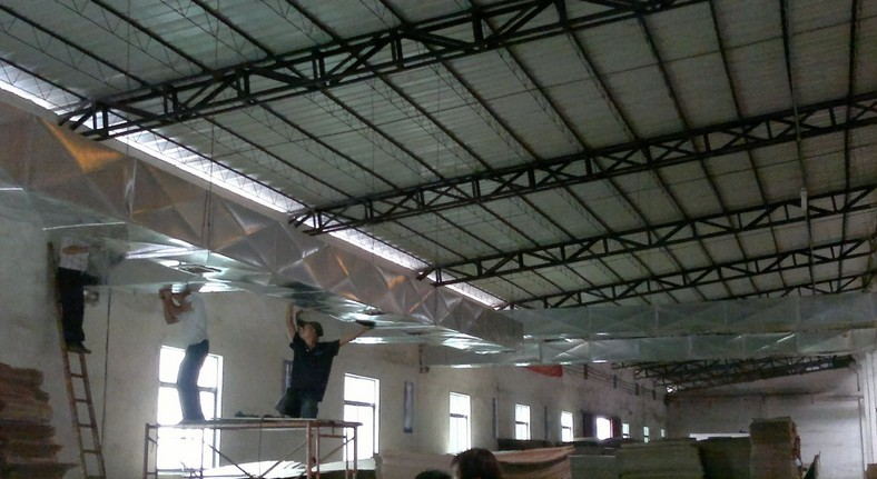 大型高溫廠房降溫通風(fēng)解決方案,鋼結(jié)構(gòu)車間降溫,鐵皮房降溫 一般這種類型的廠房都是比較高大的鋼結(jié)構(gòu)的車間比較大面積所以車間在安裝傳統(tǒng)空調(diào)時(shí)候除了考慮高費(fèi)用外還要考慮通過問題,因?yàn)殇摻Y(jié)構(gòu)車間一般夏天導(dǎo)熱讓車間的溫度一升在升,如果你沒有及時(shí)送風(fēng)和排風(fēng)以及降溫的話車間就會(huì)越來越熱和悶的情況出現(xiàn)。這時(shí)候車間工作人員精神狀態(tài)也不會(huì)好這就是高溫帶來的連鎖反應(yīng),產(chǎn)量自然也提高不了。