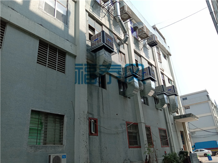 廠房通風(fēng)降溫,環(huán)?照{(diào),車間降溫設(shè)備 廠房通風(fēng)降溫解決方案一:負(fù)壓風(fēng)機+環(huán)?照{(diào)——抽排高溫悶熱空氣降溫。 廠房車間的墻壁窗戶上安裝負(fù)壓風(fēng)機,強制把車間內(nèi)大量聚集的高溫悶熱空氣排到車間外,讓車間內(nèi)形成負(fù)壓態(tài)勢,迫使車間外的空氣涌入車間內(nèi)對流換氣,降低車間內(nèi)高溫悶熱空氣的含量,提高車間內(nèi)空氣流通的速度,此方法適合本來空氣流通不暢,整體車間都有高溫悶熱情況需要解決的車間。圖一福泰環(huán)?照{(diào)安裝實例