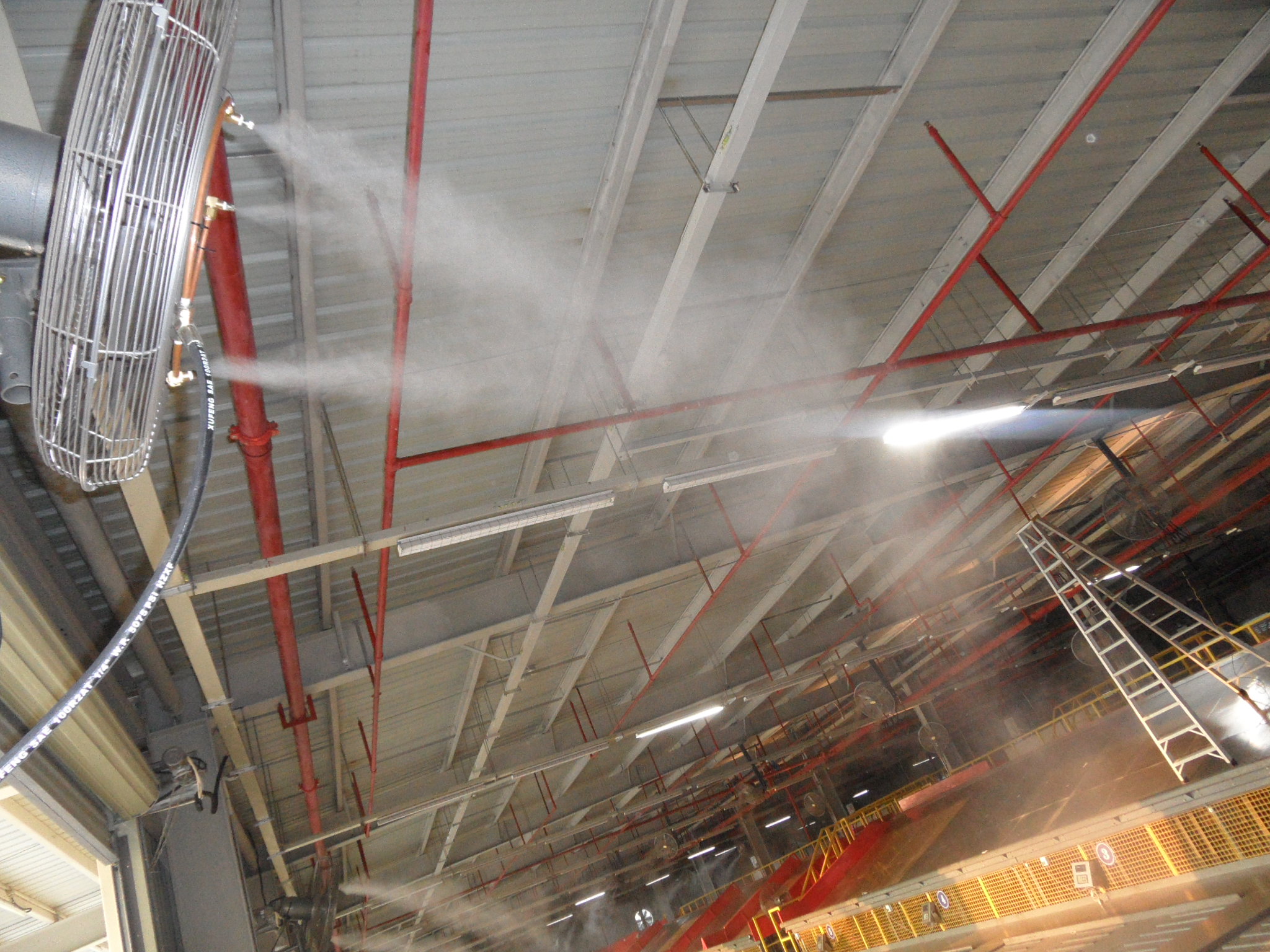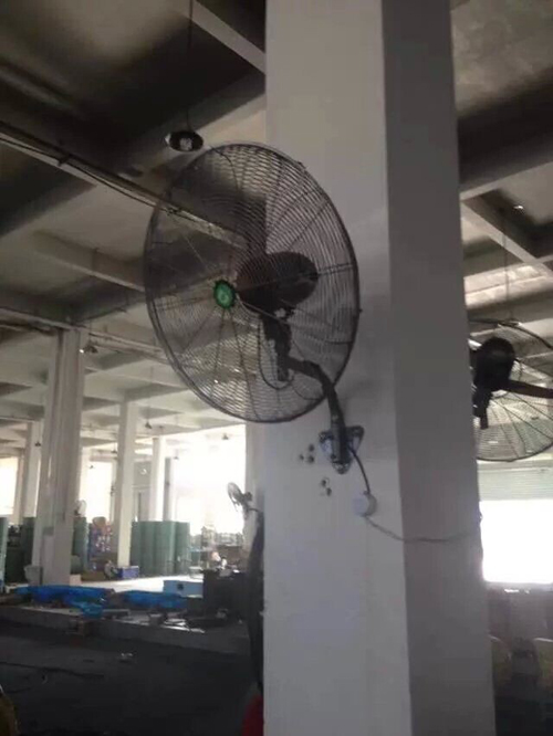噴霧降溫展示 5.電風(fēng)扇:常見(jiàn)的有吊扇、牛角扇、壁扇、臺(tái)扇、落地扇等,這一類設(shè)備優(yōu)點(diǎn)是單臺(tái)購(gòu)買投資比較小,用電較省,維修保養(yǎng)費(fèi)用低,缺點(diǎn)是效果差,安全性差。主要是利用風(fēng)扇扇葉轉(zhuǎn)動(dòng)的動(dòng)能攪動(dòng)熱空氣,引起氣流,不能實(shí)現(xiàn)通風(fēng)換氣,對(duì)排出有害氣體不良,造成車間通風(fēng)降溫工程效果差。