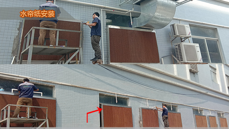 2.工廠降溫水簾車間安裝負(fù)壓風(fēng)機(jī)的對(duì)面或者側(cè)面墻壁的窗戶上安裝降溫水簾系統(tǒng),把進(jìn)入車間內(nèi)的補(bǔ)充空氣經(jīng)過(guò)降溫水簾二次降溫,變成溫度更低的空氣被負(fù)壓風(fēng)機(jī)強(qiáng)行引入到車間內(nèi)降溫,此方法與負(fù)壓風(fēng)機(jī)配合使用降溫效果最好,需要注意的是高溫工廠降溫車間降溫幾種方案方法水簾降溫系統(tǒng)空氣的量和速度要足夠補(bǔ)充車間內(nèi)高溫悶熱空氣排出的量和速度,而且要做好車間的密封,盡量保證進(jìn)入車間的空氣經(jīng)過(guò)降溫水簾系統(tǒng)。