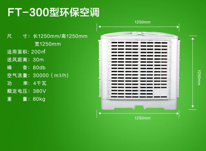它的適用降溫覆蓋面積達(dá)到300平方,滿足了很多車間需要大功率的要求。夏季你的車間也來(lái)安裝幾臺(tái)FT-300環(huán)?照{(diào)來(lái)給車間通風(fēng)換氣降溫吧!讓涼爽的一夏吧!