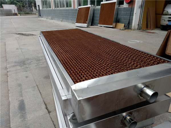 首選來說說服裝廠粉塵氣味很大空氣不流通,讓車間比較難受,那么再來看看水簾風機降溫系統(tǒng):由負壓風機及濕簾組成的水簾風機降溫系統(tǒng),它投資成本低,運行成本小,無任何污染,不阻礙空氣正常流通;水簾風機降溫核心是在濕簾紙內(nèi)完成的。在波紋狀的纖維紙表面有層薄的水膜,當舍外的干熱空氣經(jīng)過過濕簾紙時,水膜中的水會吸收空氣中的熱量后蒸發(fā),帶走大量潛熱,使經(jīng)過濕簾紙的空氣溫度降低,經(jīng)過這樣處理后的涼爽濕潤空氣進入舍內(nèi)。與室內(nèi)的熱空氣混合后,通過負壓風機排出室外。同時,在冷卻過程中,清除舍外空氣中之粉塵廢氣、增加進氣含氧量,也就是水從濕簾的頂部沿濕簾的波紋表面均勻的流下,使?jié)窈煆纳系较戮鶆虻臐駶,風機抽風時,產(chǎn)生壓力,迫使未飽和的空氣流經(jīng)多孔濕潤濕簾表面時,空氣中大量的濕熱轉(zhuǎn)化為潛熱,迫使進入室內(nèi)的空氣從干球溫度降低接近濕球溫度增加了空氣的濕度,使得干燥的熱空氣變?yōu)闈崈舻臎鏊諝,從而起到降溫、換氣、除塵、增加舍內(nèi)空氣含氧量的目的。