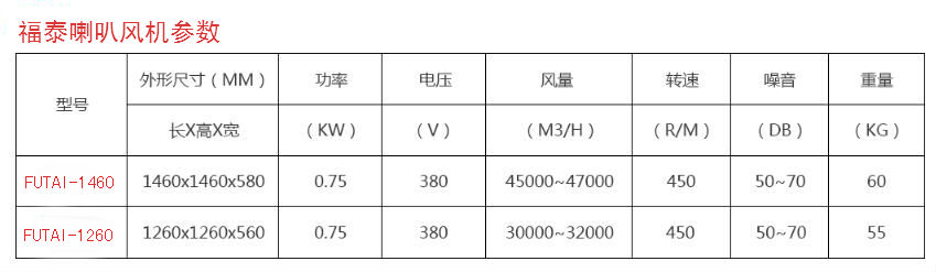福泰喇叭風(fēng)機(jī)適用范圍: